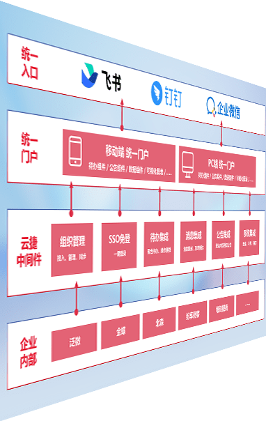 对协作平台提供支持服务,,,支持企业应用与协作平台对接,,,包含组织同步、、消息集成、、、待办集成等。。。。支持目前主流的协作平台:钉钉、、、、企微和飞书。。。